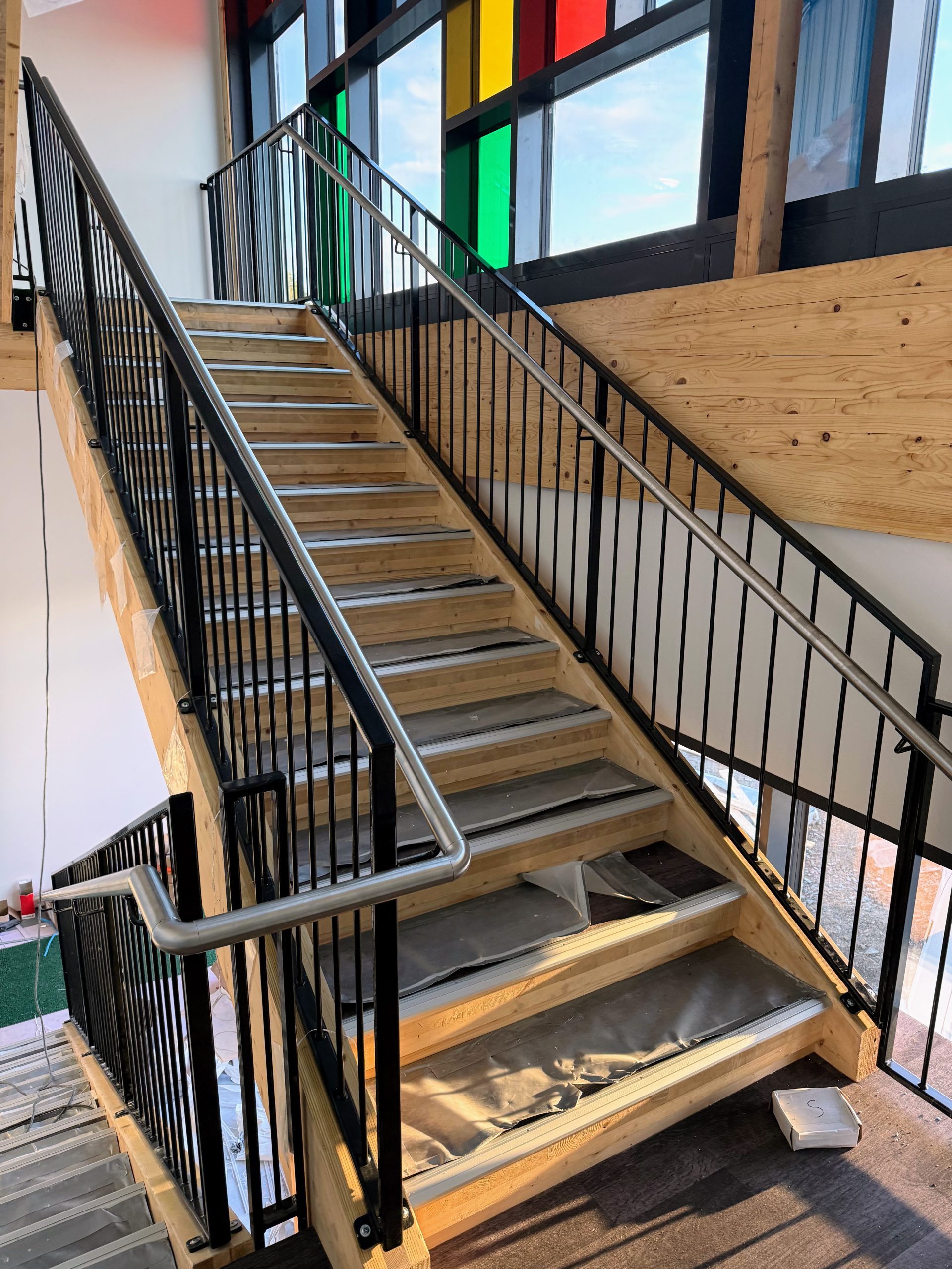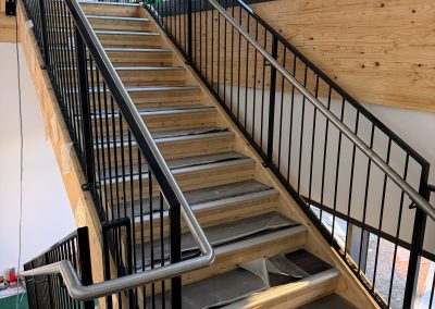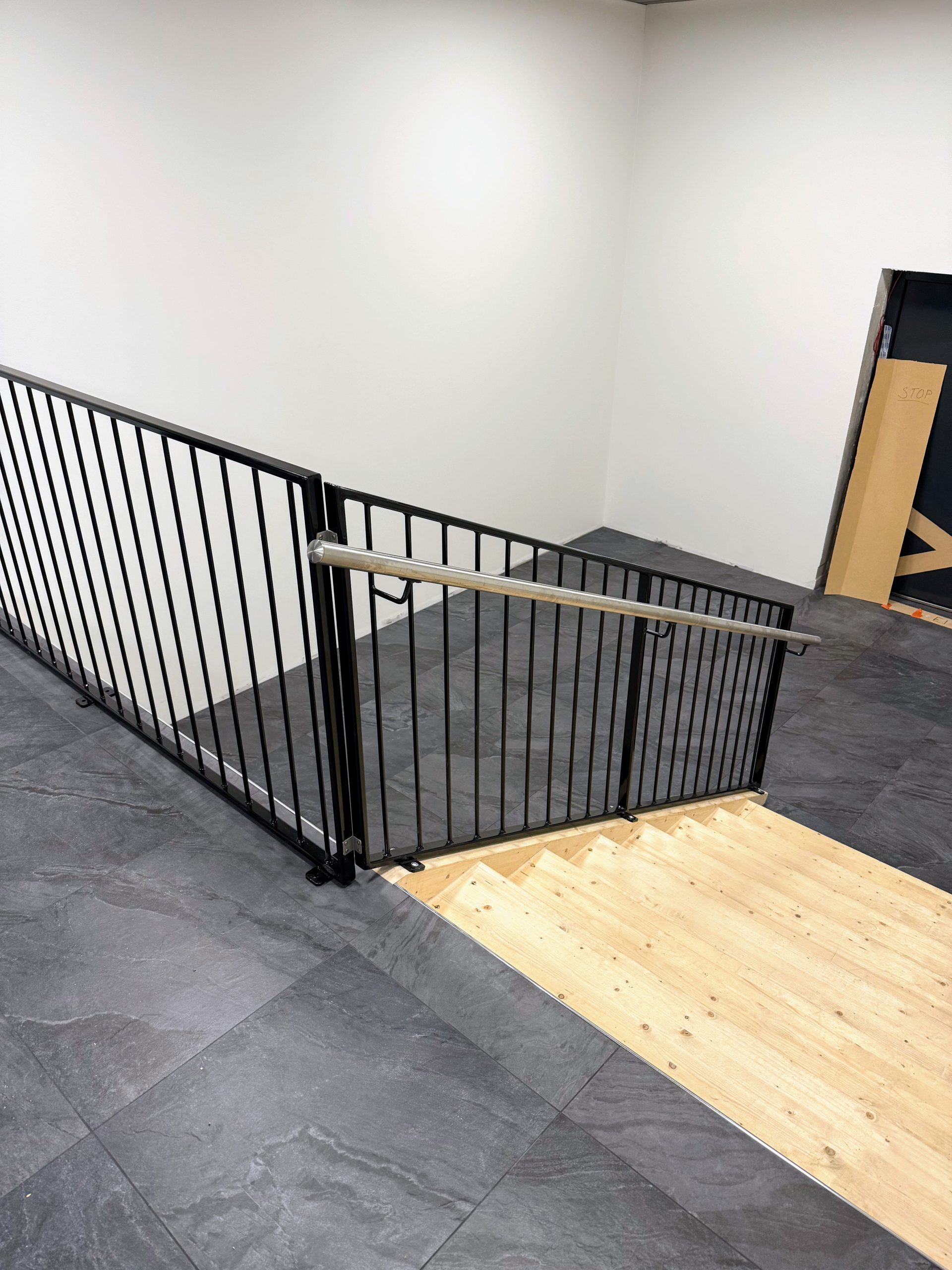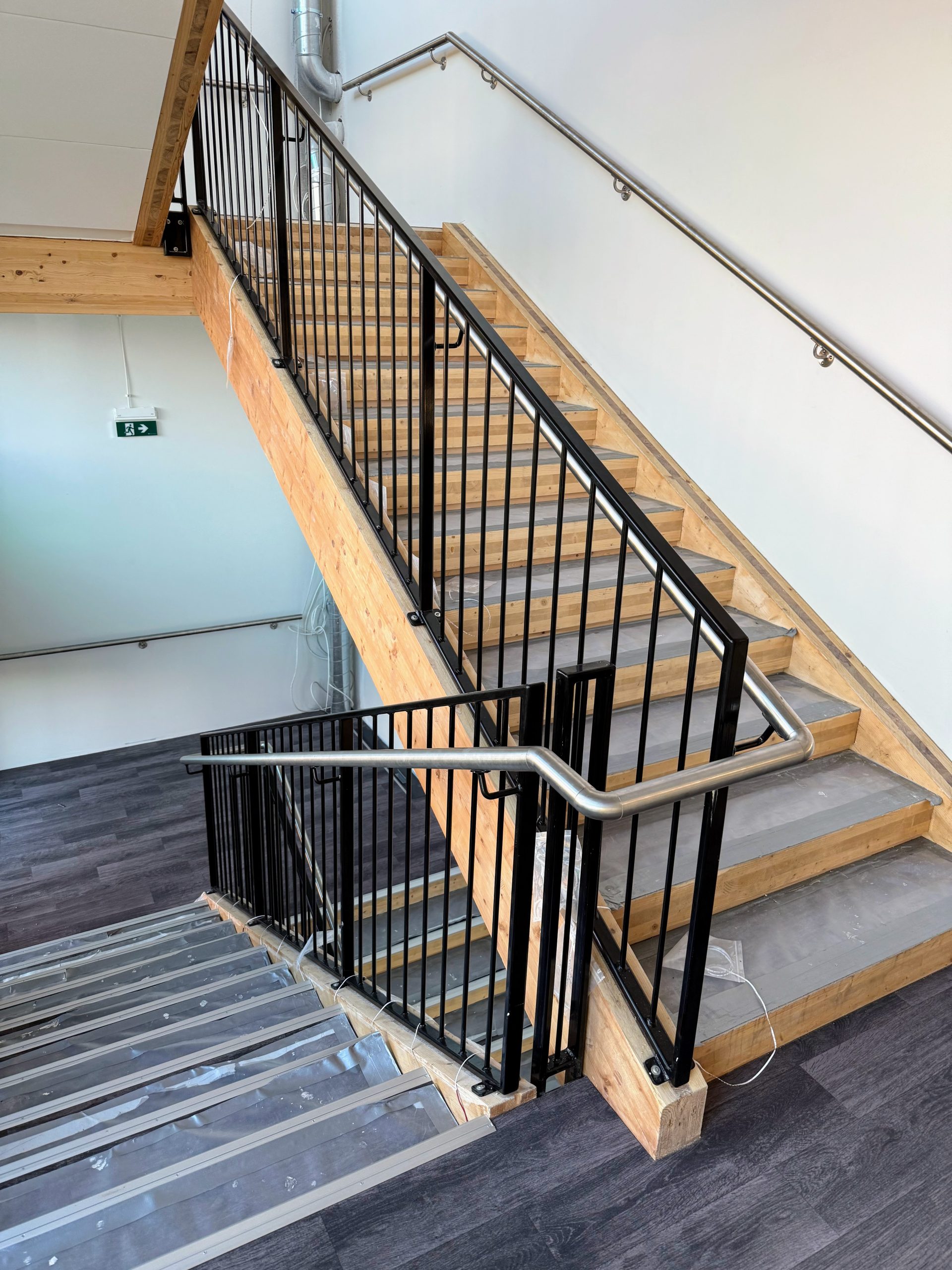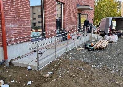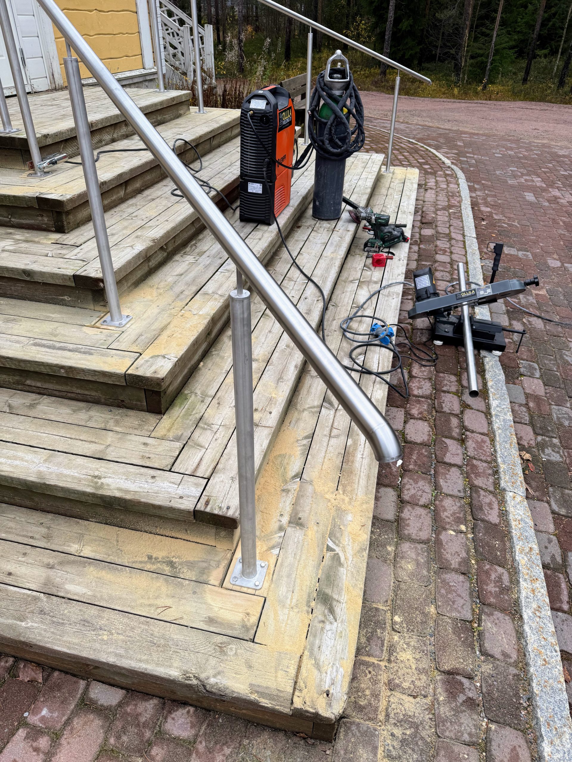 Valmistimme ja asensimme luiskiin käsijohteet harjatusta ruostumattomasta teräksestä.