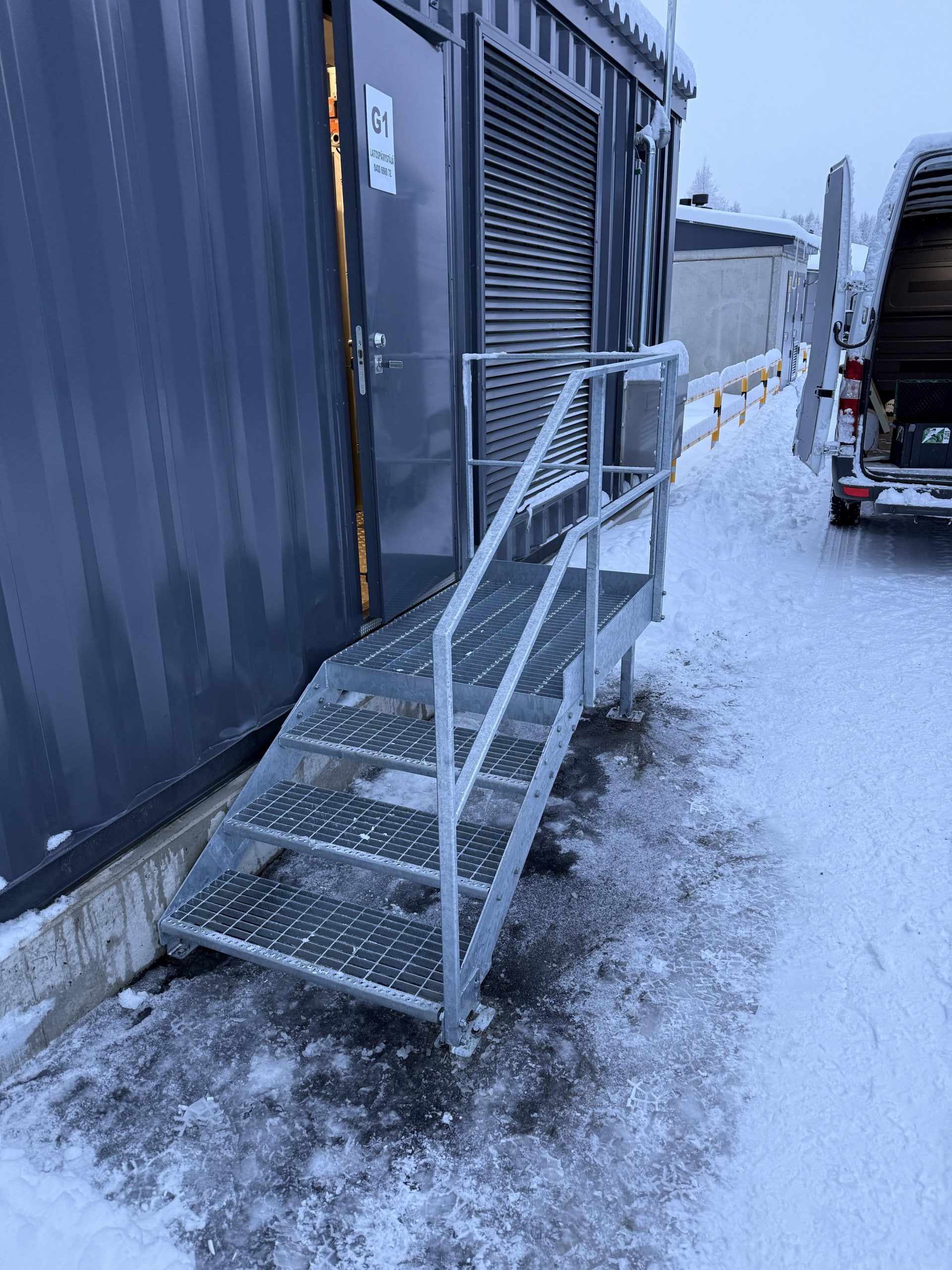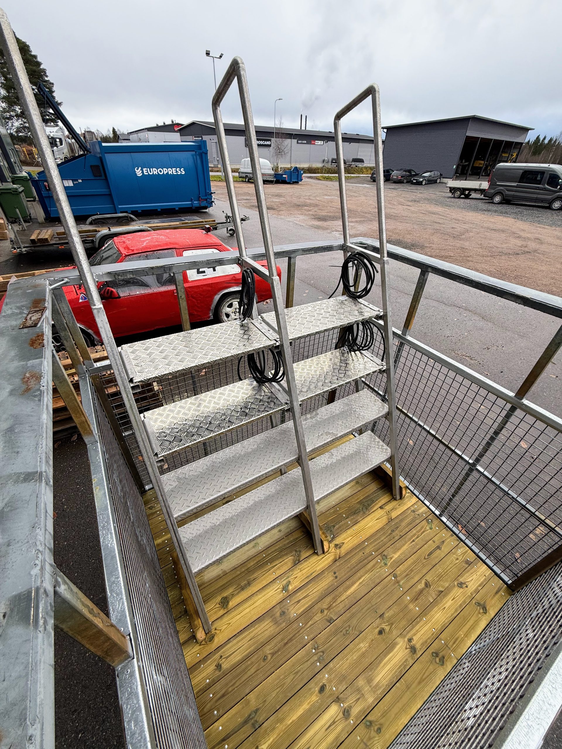 Kuumasinkitty taso ja portaat Rovaniemelle. tähän tehtiin 3D mallinnus, valmistus ja asennus